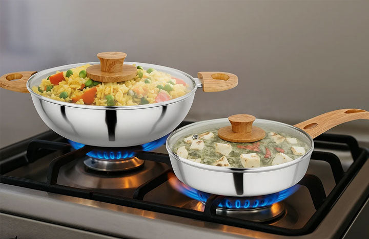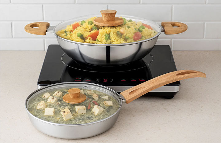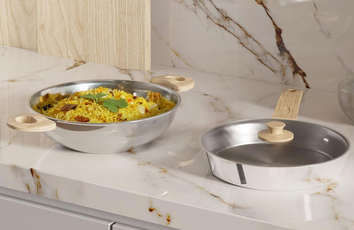 • An ultra-efficient Induction friendly base ensures quick heat distribution, which is perfect for all kinds of Indian cuisine. It offers superior heat distribution as well as shorter cooking time; inner layer of steel facilitates healthy cooking with minimal oil use.