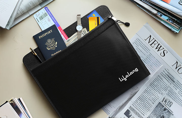 Safeguard your valuables with the Lifelong Fire & Water Resistant Document Bag (LLHSA01). This 15"x11" black envelope organizer is crafted from fireproof and waterproof material, perfect for securing cash, passports, contracts, IDs, and important files. Featuring a durable zipper, it offers peace of mind against fire and water damage. Keep your essential documents protected and organized wherever you go!