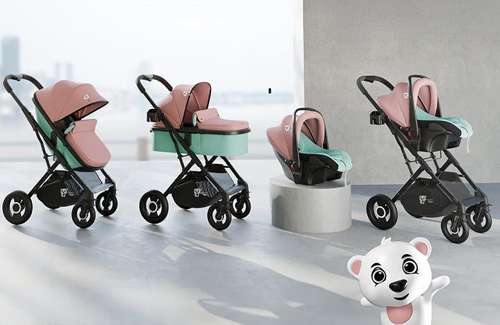 Designed for babies aged 0–3 years, this versatile stroller seamlessly transforms between a pram, reversible bassinet, car seat, rocker, and carry cot, giving you complete flexibility wherever you go.