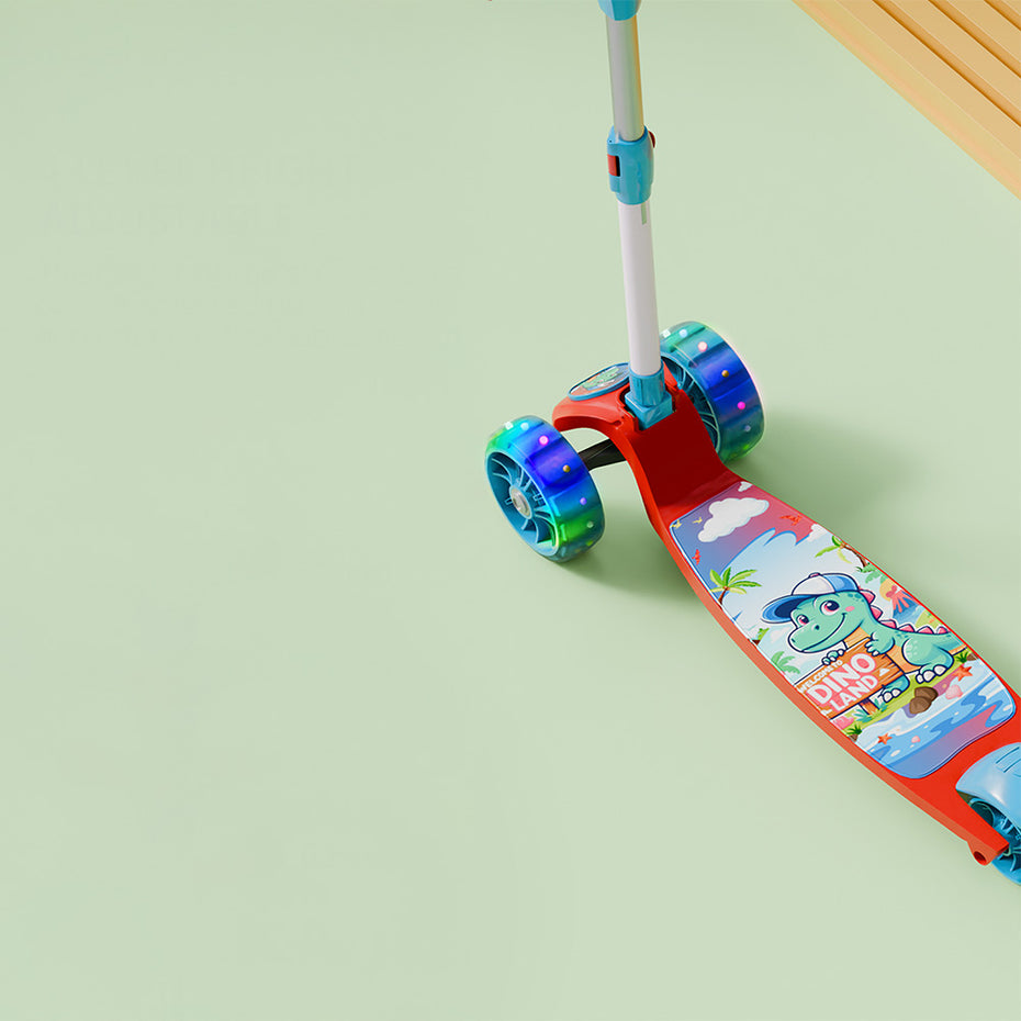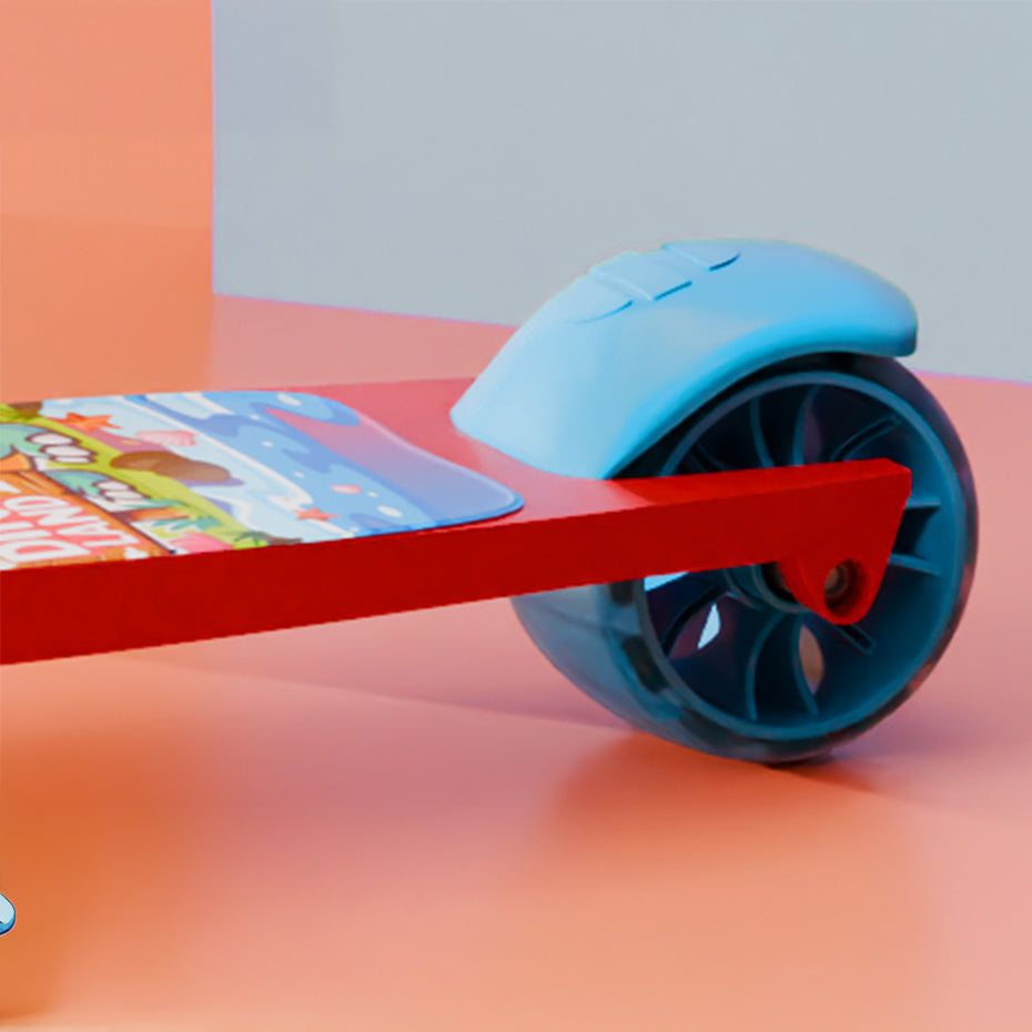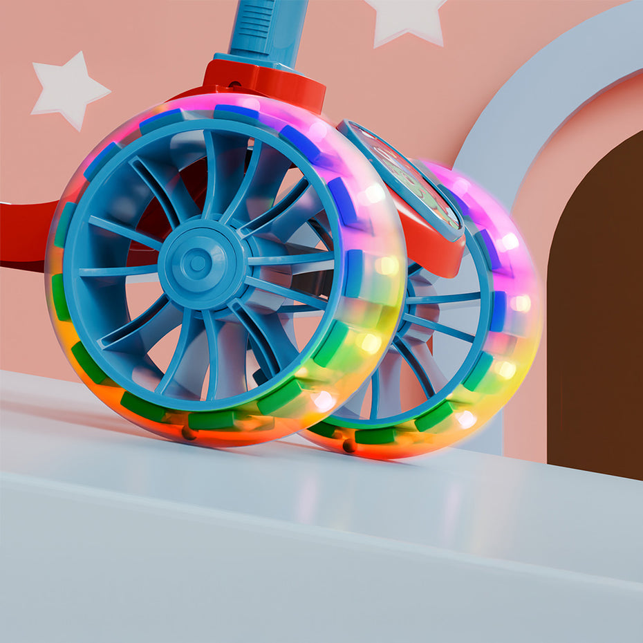 The scooter’s built-in LED wheels flash as they roll, adding a fun, colorful touch to every ride. The faster you go, the brighter they shine!
