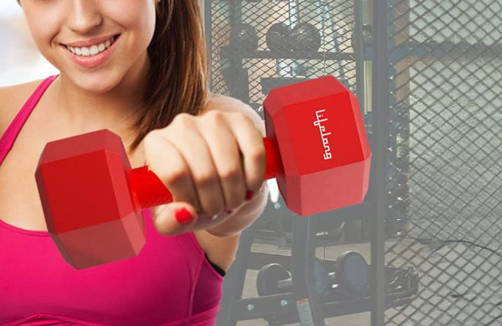 Lifelong PVC Hex Fixed Dumbbells Pack of 2 – 3kg Each (Total 6kg), Red Home Gym Weights for Men & Women