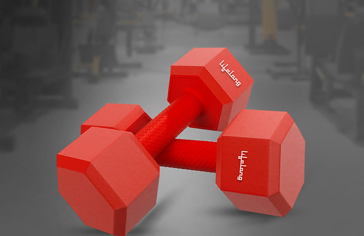 Lifelong PVC Hex Dumbbells Pack of 2 – 5kg Each (Total 10kg), Red Home Gym Weights for Men & Women