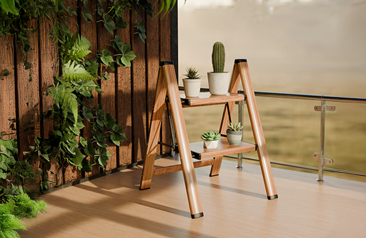 2 Steps Ladder for Home, Wooden Finish Coating, Foldable & Portable Stairs, Versatile Use for Kitchen, Bathroom & Office Foot Stool